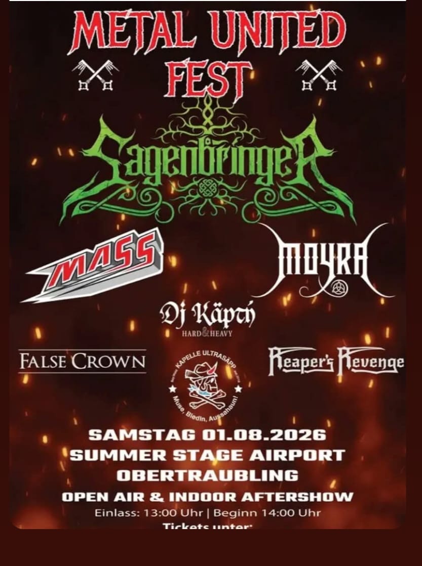 MASS @ Metal United Festival 2026 Von hannes Am Februar 5, 2026 Termin Details Datum: August 1, 2026 1:00 p.m. – 22, 2026 11:55 p.m. Ort: Airport Live @ Metal United Festival auf der Summer Stage Airport in Obertraubling! Vorheriger MASS @ Haus111